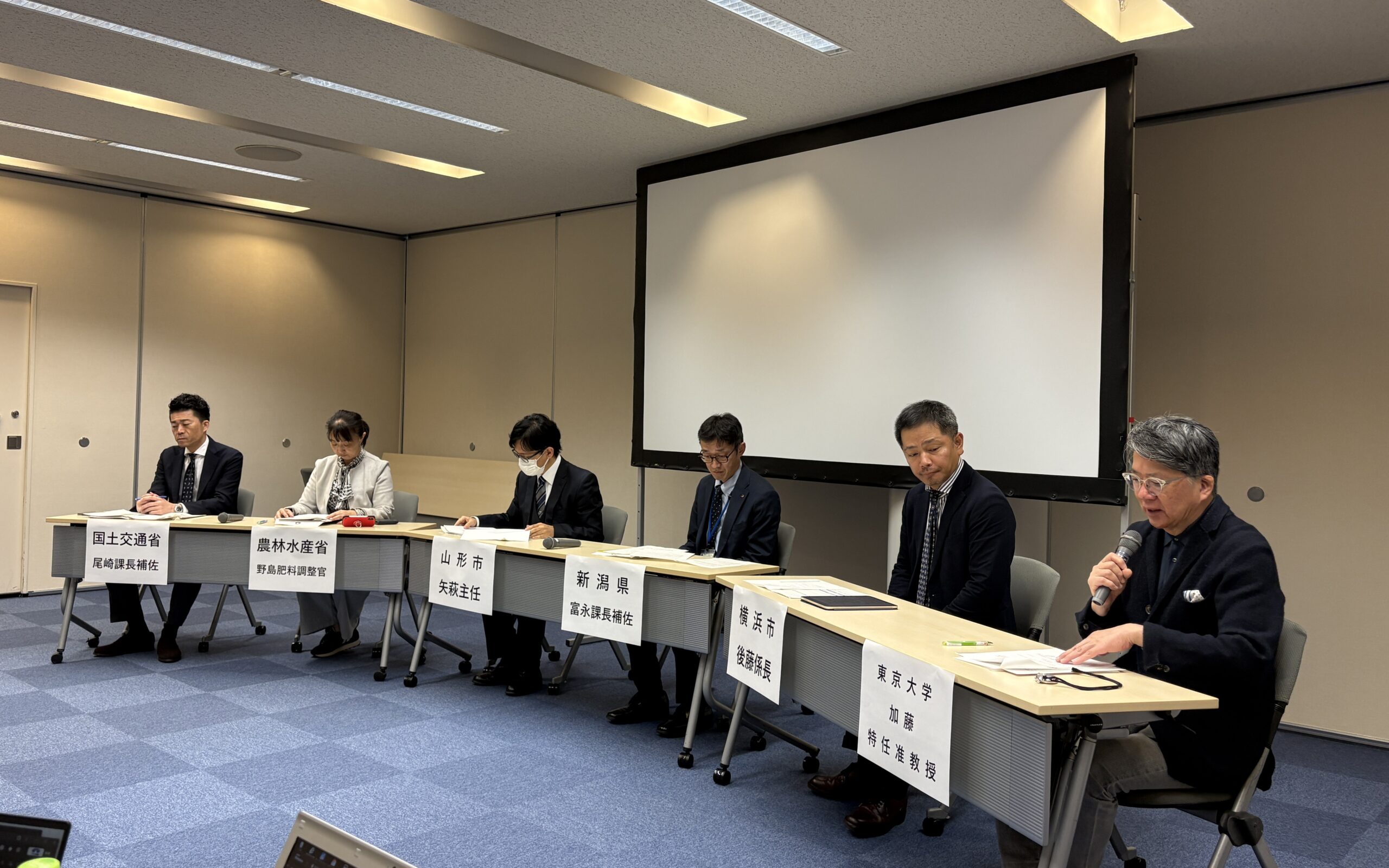 セミナーでは国土交通省、農林水産省、東京大学の加藤特任准教授、横浜市、新潟県、山形市から情報提供を頂きました。また、パネルディスカッションを行い、更なる情報共有を行いました。