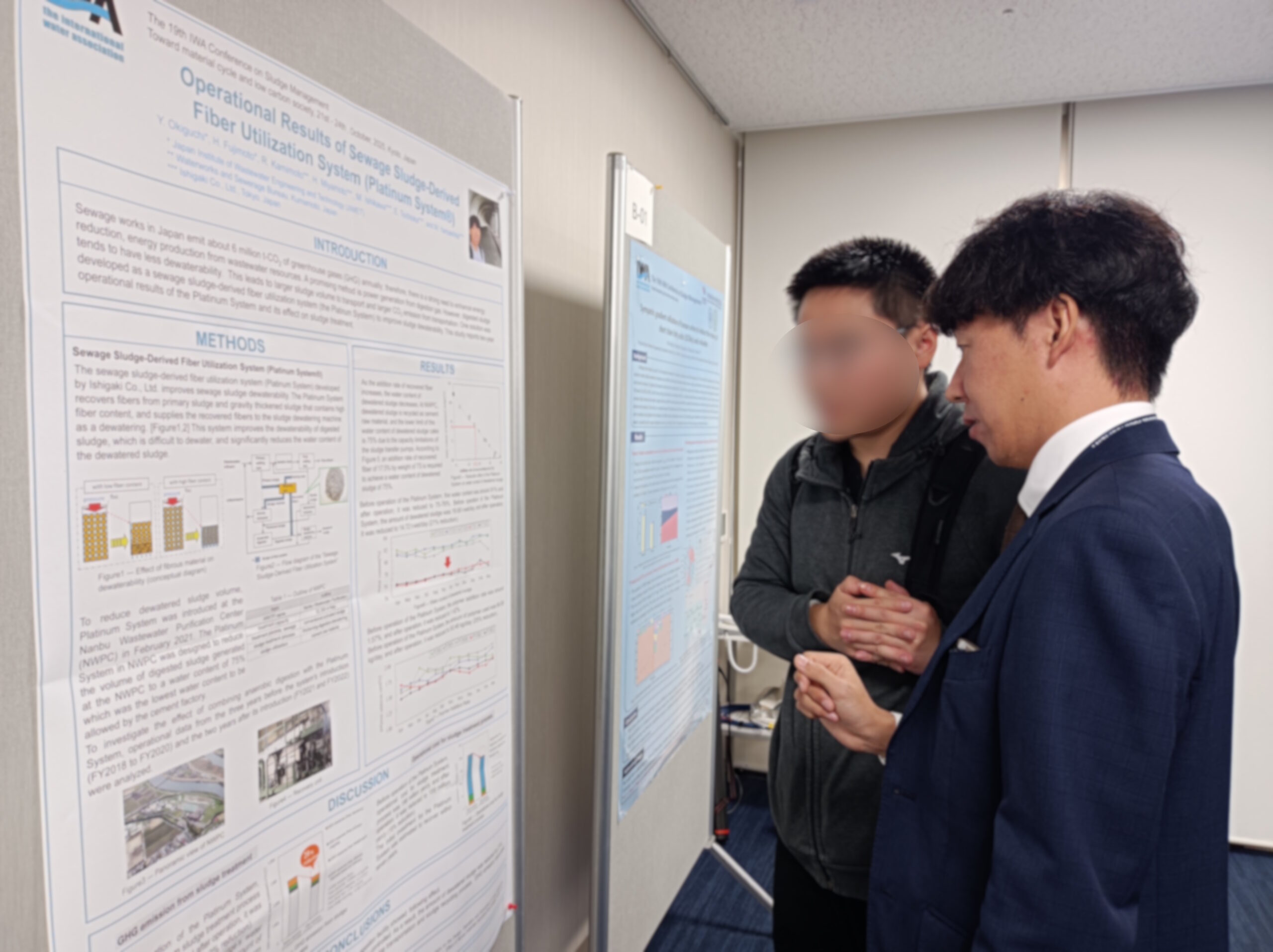 当機構からは、資源循環研究部長の藤本がプレワークショップ(下水汚泥の農業利用促進)の司会を行いました。また、資源循環研究部研究員の冨田が「下水処理場における焼却炉からのN2O排出量削減」の口頭発表を行い、同じく沖口が「下水汚泥由来繊維有効利用システム(プラチナシステム)の運転結果」のポスター発表を行いました。